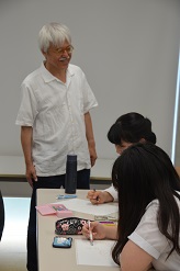 朝は、客員教授の加藤芳夫先生による学科企画「“なっちゃん”の父のパッケージデザイン教室」に、たくさんの方々にご参加いただきました。参加者の方々は、加藤先生のお話をじっくりお聞きになり、自分オリジナルのデザインをスケッチする実習を行いました。