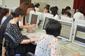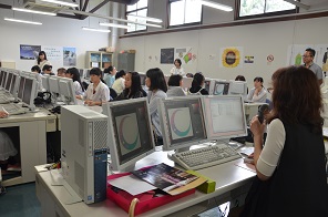 午後は「デジタルメディアデザイン=自分らしさを表現する」 をテーマに画像編集ソフトPhotoshopを使用した授業が行われました 。