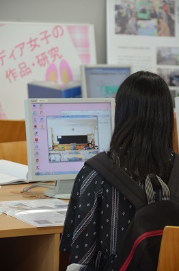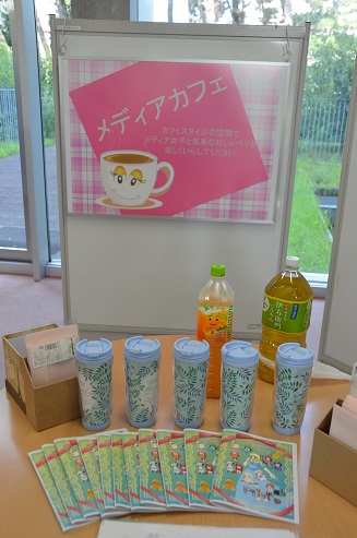 Media Caféでは、メディア情報学科の学生が制作した大人の塗り絵やゲームを楽しみつつ、気軽にお茶を飲みながら在校生や教員とお話をしていただきました。