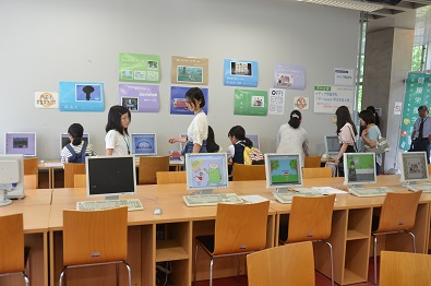 メディア情報学科の学生の卒業制作のPCゲームを集め、実際にご来場いただいた方々にプレイしていただきました。