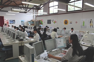大学の情報処理教室で行われた授業では、メディア情報学科教員のサポートのもと、「情報」の教職課程を取っている学生が中心になって授業が行われました。高等部の生徒たちは普段と違った大学での授業であることや、年の近いメディアの学生が作業のサポートをしていることもあり、少し緊張しつつ、大変楽しそうに授業を受けていました。それぞれに大変ユニークな画像が出来上がりました。