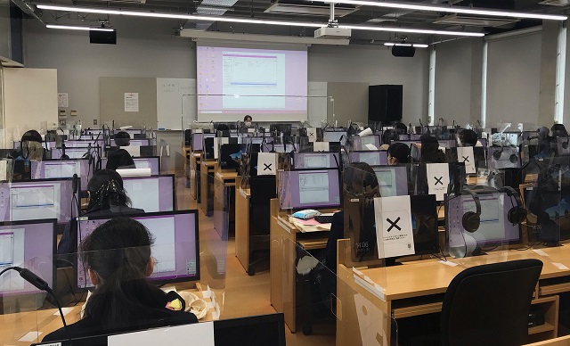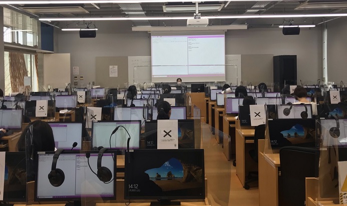 コンピュータ教室で、HTMLとCSSというプログラミング言語を使ったオリジナルのホームページを作成する実習形式の講義が行われました。