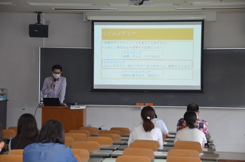 模擬授業は「SNSの特性を知ろう」。身近な存在であるSNSにどのような特徴があるのか、改めて考えさせられるテーマで、参加者の方も興味深く耳を傾けていらっしゃいました。