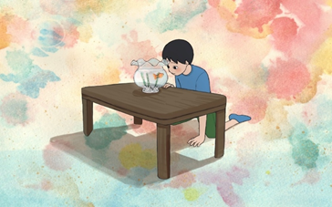 主人公である少年の細かなニュアンスを表現する2D CG、ダイナミックなカメラワークが使える3D CG、画面の動きに迫力のあるシーンを表現するためのクレイ、金魚の不気味さを表現するためのコラージュとそれぞれのシーンの世界観にあった4つの手法を使用して作成されています。