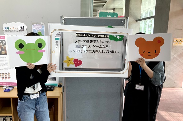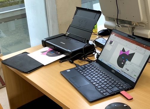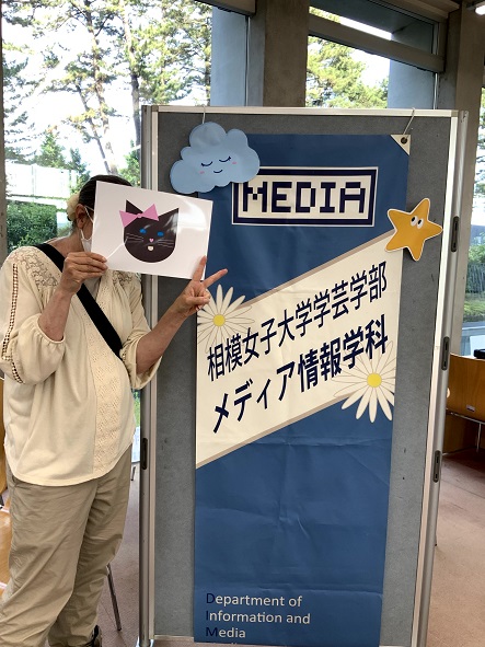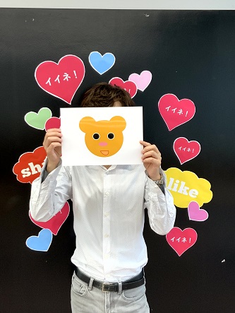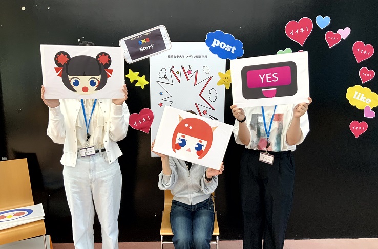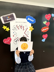 PowerPointというソフトウェアを使って自由に絵文字を作っていただき、絵文字を顔の前に置いて写真を撮影しました。