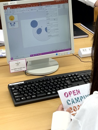 普段、メディア情報学科の授業で使っている教室で、Photoshopというソフトウェアを使ってフォトコラージュを行う実習を行いました。思い思いの作品を熱心に制作している様子でした。