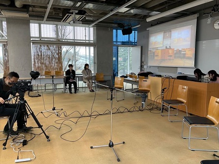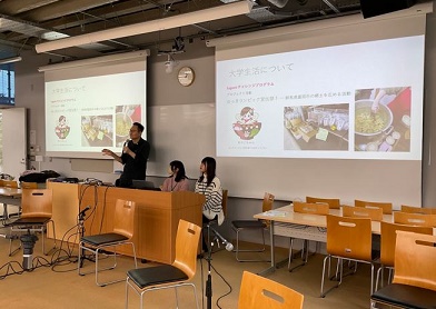 スクーリングでは、入学後の大学生活についての説明やメディア情報学科の教員の自己紹介ビデオの上映が行われました。