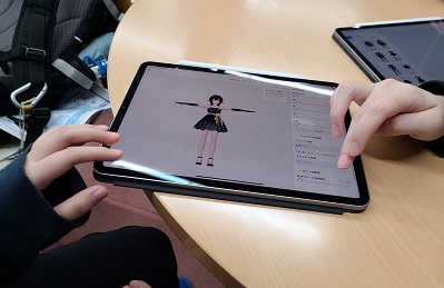 3D CGキャラクターをデザインし、簡単なモーションキャプチャーを使って動かす体験を行いました。