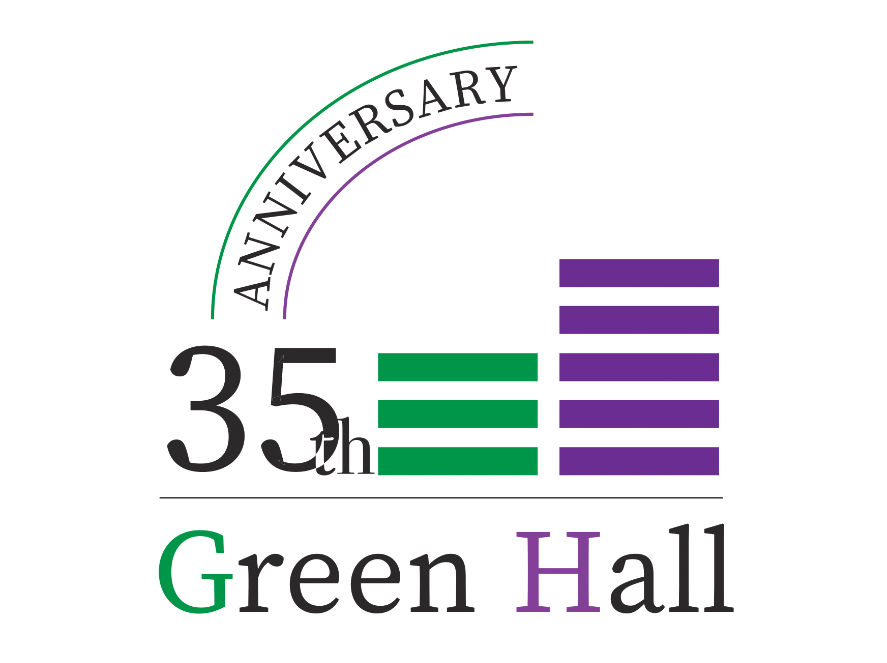 これを記念したロゴマークを学芸学部 メディア情報学科の学生が考案し、この度完成いたしました。緑と紫のボーダーラインは「舞台」と「音量調節のボリューム」をイメージし、全体を通して「発信」「成長」の意味合いを込めています。